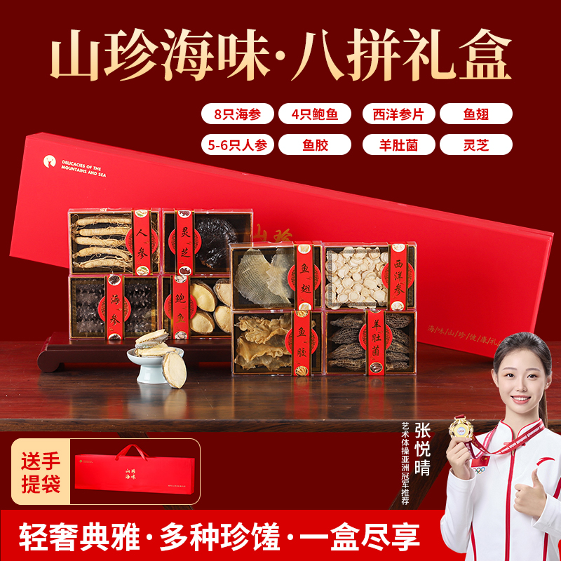 山海八拼C款-8只海参4只鲍鱼西洋参片鱼翅人参鱼胶羊肚菌灵芝