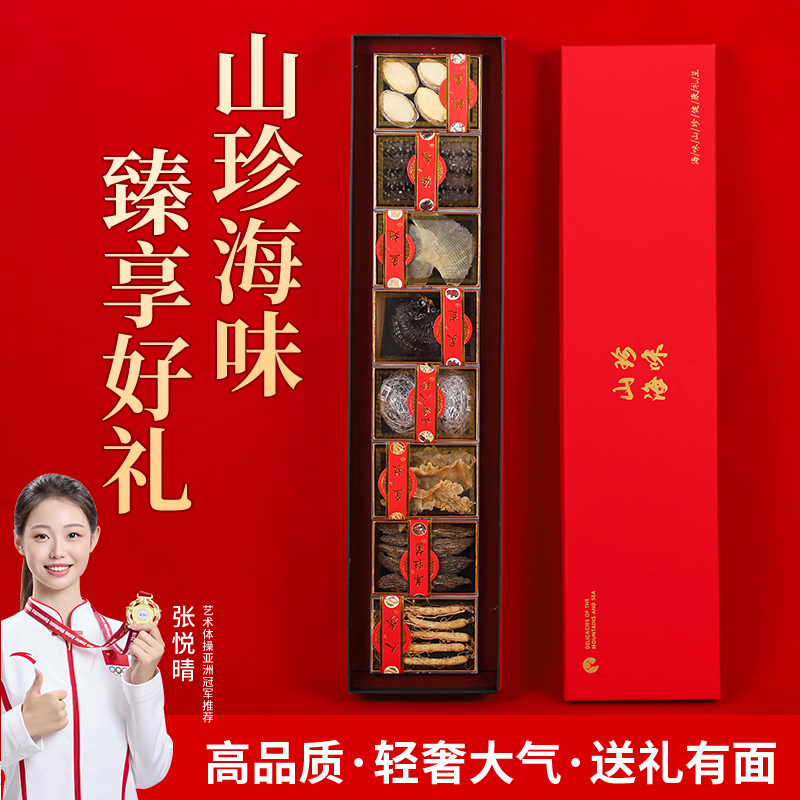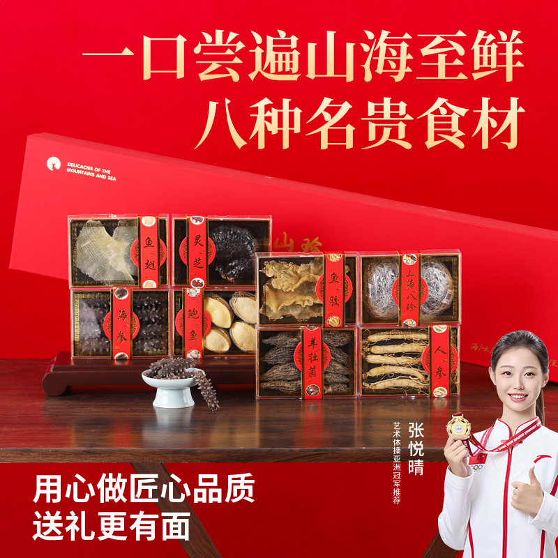 山海八拼D款-8只海参4只鲍鱼西洋参片鱼翅人参鱼胶羊肚菌灵芝
